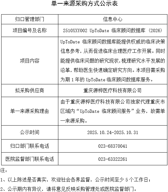 UpToDate临床顾问数据库(2026)单一来源采购方式公示